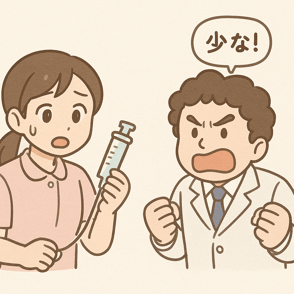 結局、先輩看護師が走って開封済みのボトル(蓋開けてそのまま注げるやつ)を取りに行ってくれました。