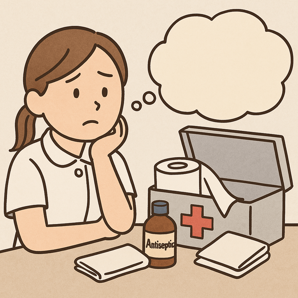「今後のために、100均とかでいいので、ガーゼを常備しておくと安心ですよ〜」って。